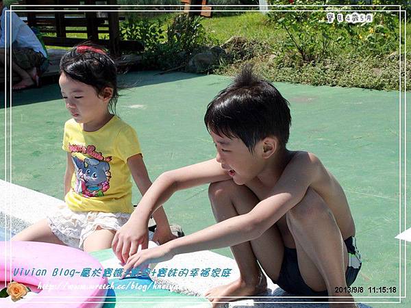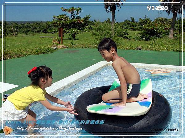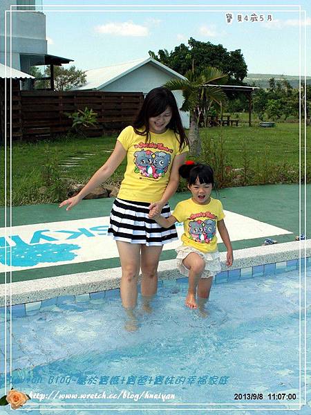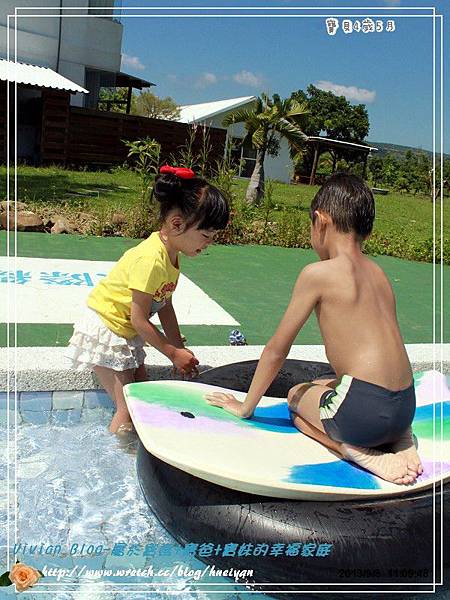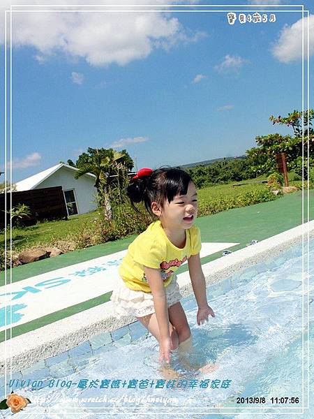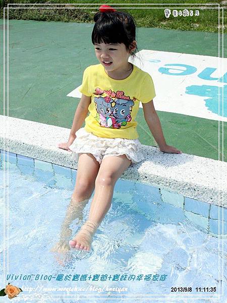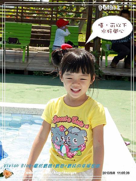 ▼這邊有個好棒的戲水池,用完早餐後,閎閎格格家,已經迫不及待地跳到水裡玩水。