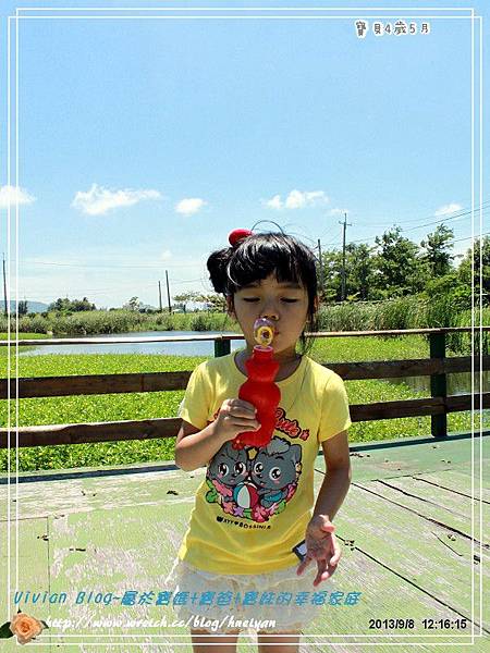▼一起到田野旁的池塘吹泡泡ㄅ。